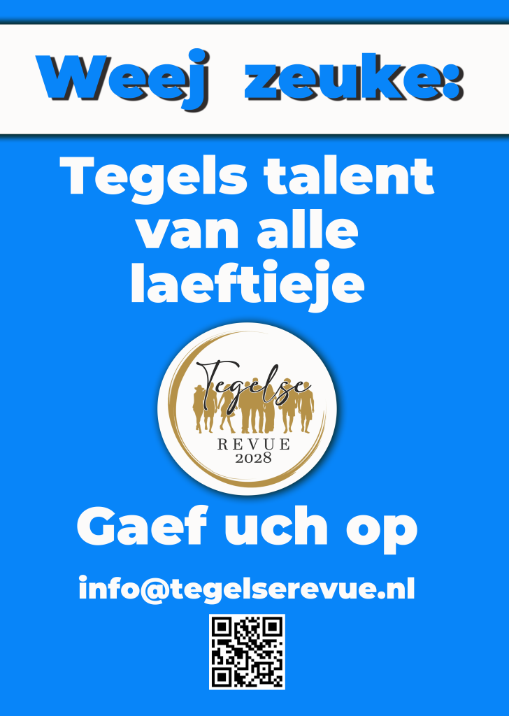 Wellicht hebben jullie al vernomen dat er in 2028 weer een Tegelse Revue op de planken wordt gebracht.